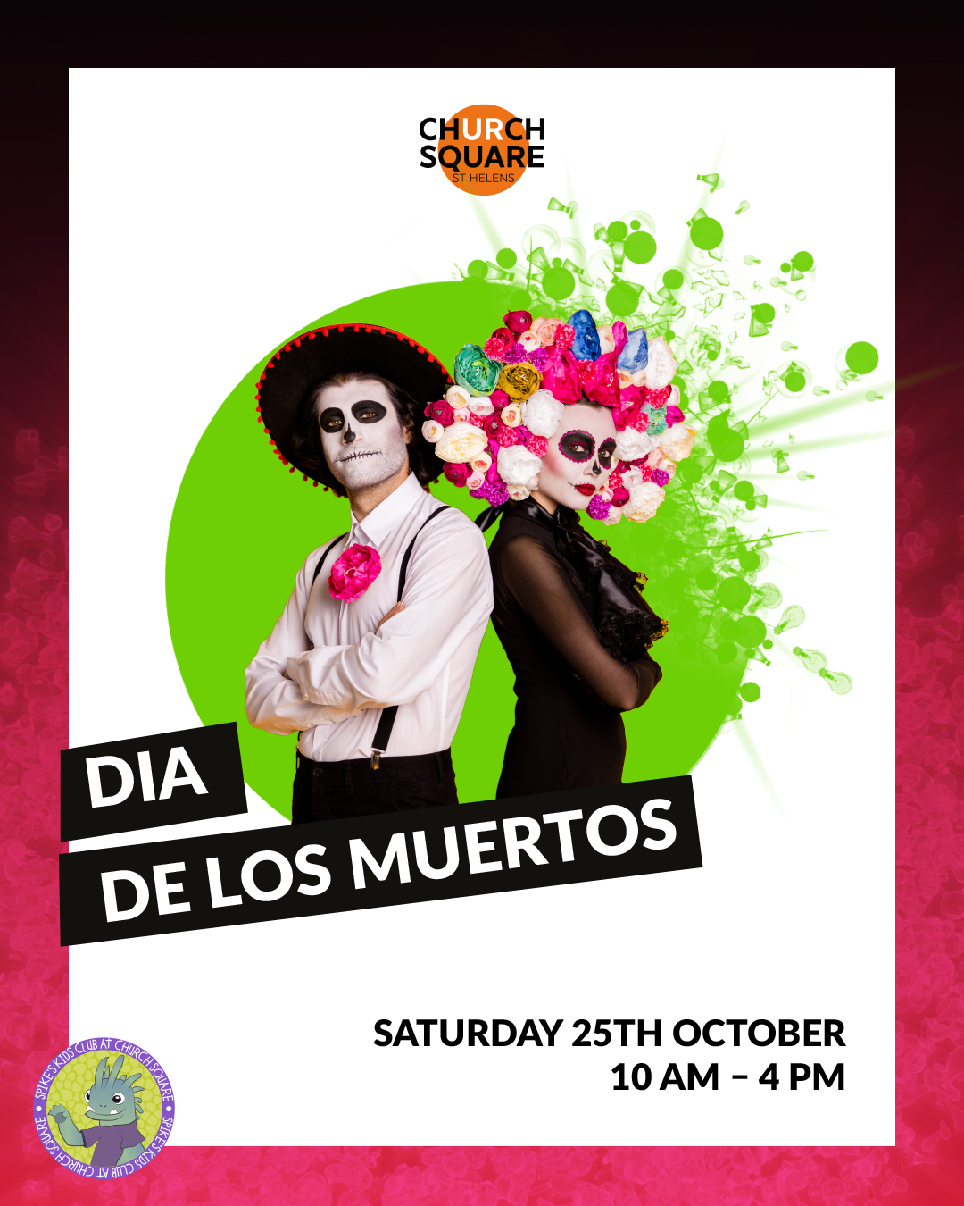 Join us for a vibrant Day of the Dead Celebration at Church Square! On Saturday 25th October 10am - 4pm. We will have a Dia De Los Muertos walkabout act on intervals throughout the day be sure to capture a picture